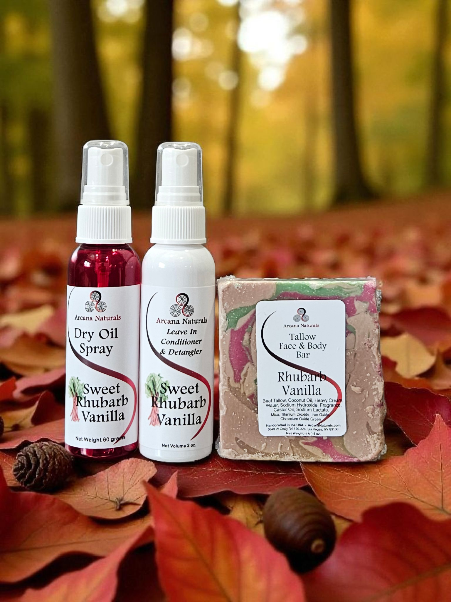 The 2025 Fall Bundle consists of three of our best selling products in one Fall inspired scent - Sweet Rhubarb Vanilla.